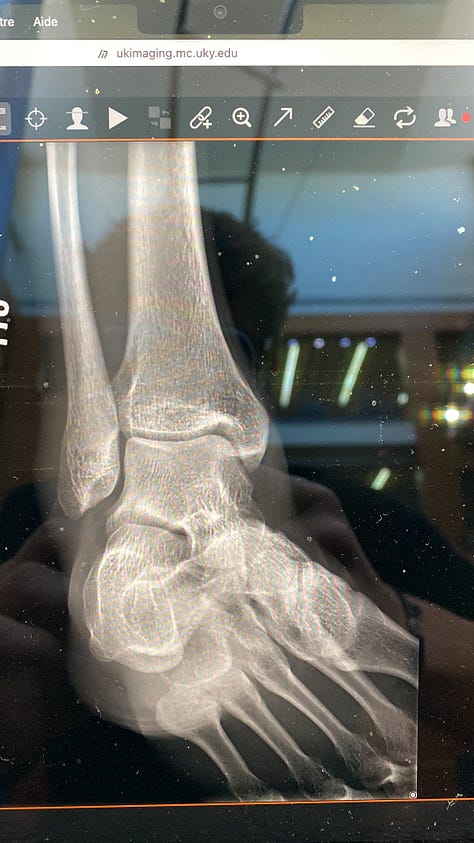 Lors d’un entraînement pour un petit tournoi de foot, un copain a tiré dans ma cheville au lieu de la balle sans faire exprès, ça a bloqué ma cheville et elle s’est ensuite retournée. Le choc a fait gonfler toute la cheville, en quelques minutes elle est devenue grosse comme une balle de tennis. Une ambulance est venue pour vérifier que ce n’était pas cassé, heureusement que non ! Si en tombant j’avais tapé ma tête sur le sol, j’aurais dû obligatoirement prendre une ambulance pour aller faire un point avec un docteur et deviner le prix de l’ambulance aux États-Unis… 12000€ pour 4 min de route car l’hôpital se situe juste à côté. Un policier m’a même proposé de m’y emmener. Le système médicale est plus simple en France, ce n’est pas comparable.