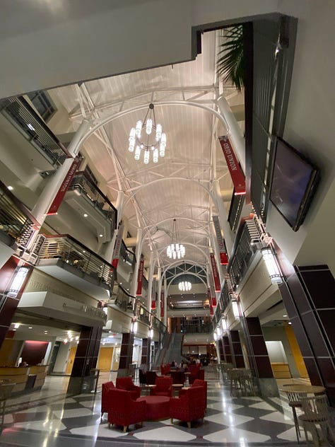Après cela, nous sommes partis découvrir le campus de cette université qui est gigantesque. Notre université ressemble à un petit village comparé à la leur, rien à voir. Ils ont 5 salles de sport, des infrastructures de malades, un stade de football américain encore plus grand, plus de logements, plus de bâtiments, plus de tout. Le prix des études est également est plus élevé…