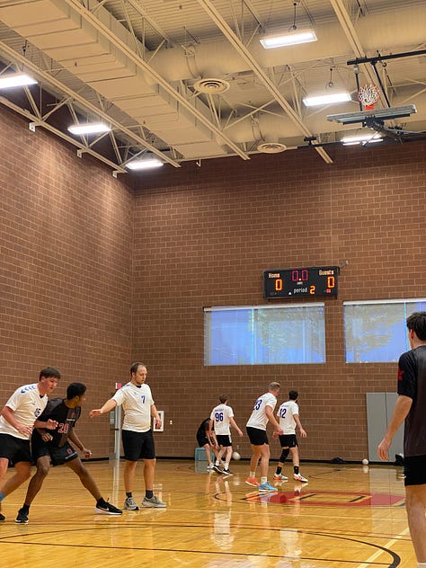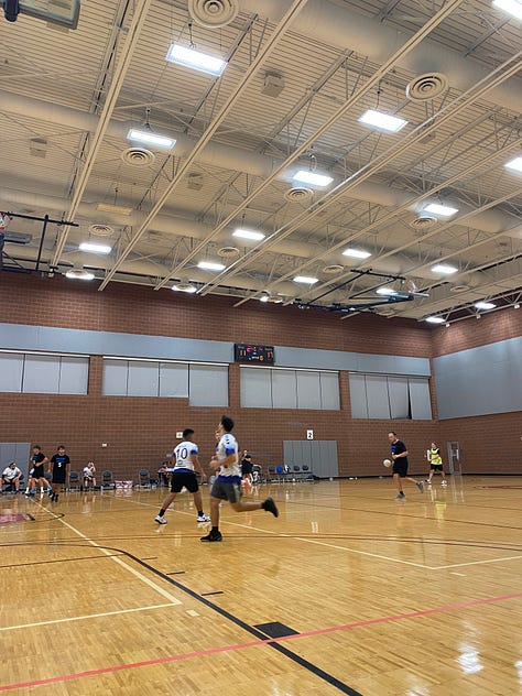 Deux semaines après ma blessure à la cheville, nous sommes partis pour un tournoi de handball dans l’état de l’Ohio, nous étions 18 à participer, l’équipe féminine et l’équipe masculine. Nous avions un programme dense : 8 matchs sur 1 journée. Je ne pouvais pas jouer malheureusement à cause de ma cheville, mais je suis tout de même venu afin d’encourager l’équipe.
