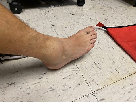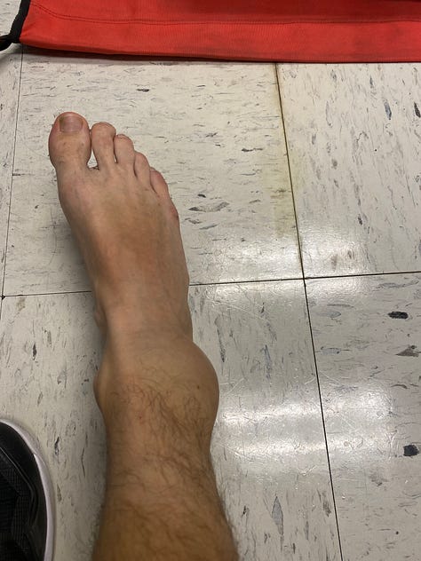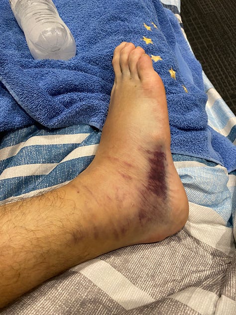J’ai dû marcher avec des béquilles pendant 2 jours et j’ai pu reprendre la marche très lentement et en boitant dès le troisième jour. Après une bonne semaine, j’ai pu reprendre le vélo en faisant attention aux chocs et après trois semaines, j’ai commencé à faire des exercices pour renforcer ma cheville. J’ai repris la course à pied très doucement après un peu plus de 3 semaines et je cours régulièrement pour m’assurer que la cheville se renforce. Une sacrée histoire, mais je suis content que ça n’ait pas été pire ! Pas de foot prévu avant un certain temps…